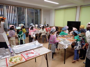 ピザのトッピングをして子どもたちはピザがピザ窯で焼ける様子を見させてもらいました◎味は、格別おいしいものでした♪